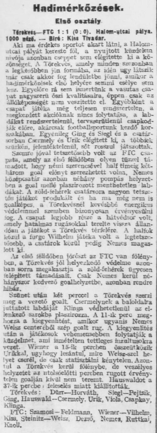 Kategória: 1916/17 | Címke: 1916/17, Knoll Károly, NB1, Nemes Sándor, Törekvés