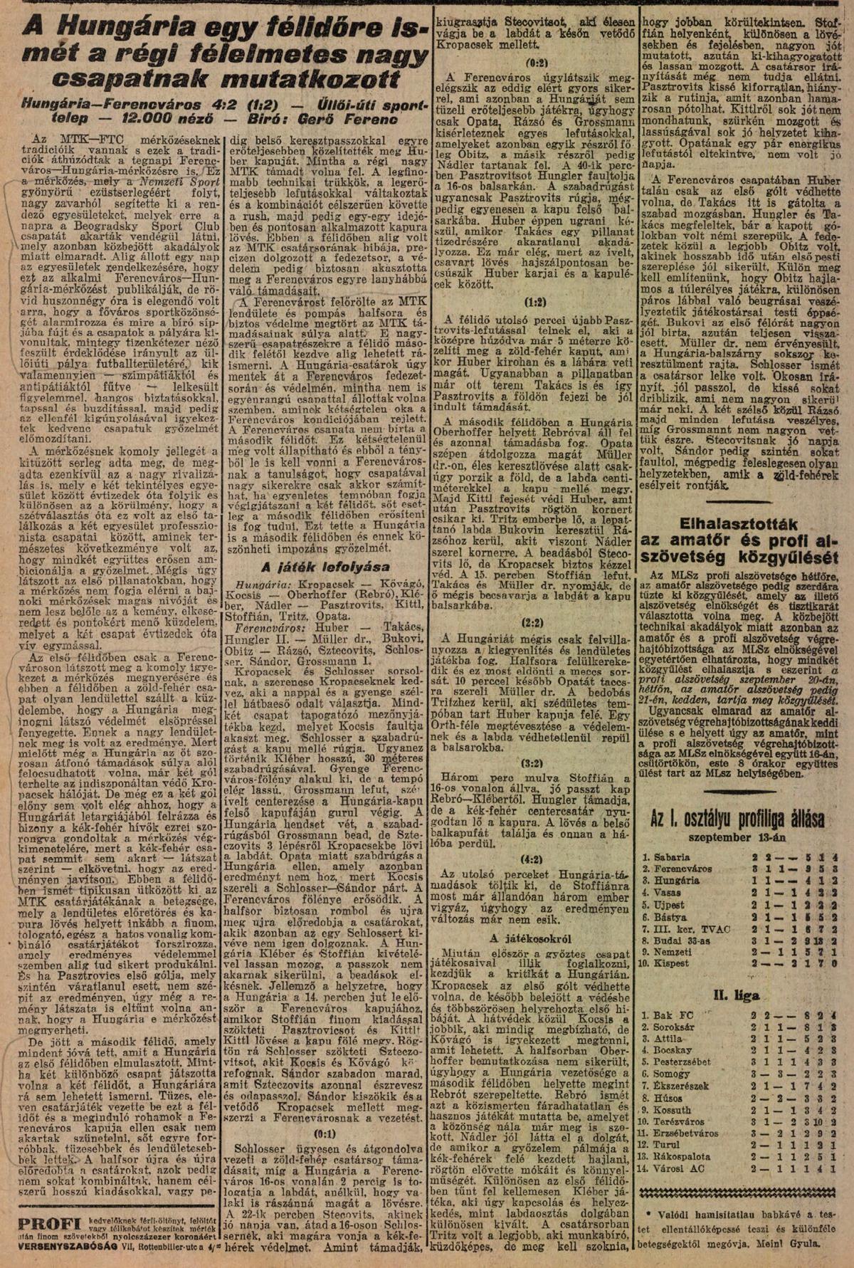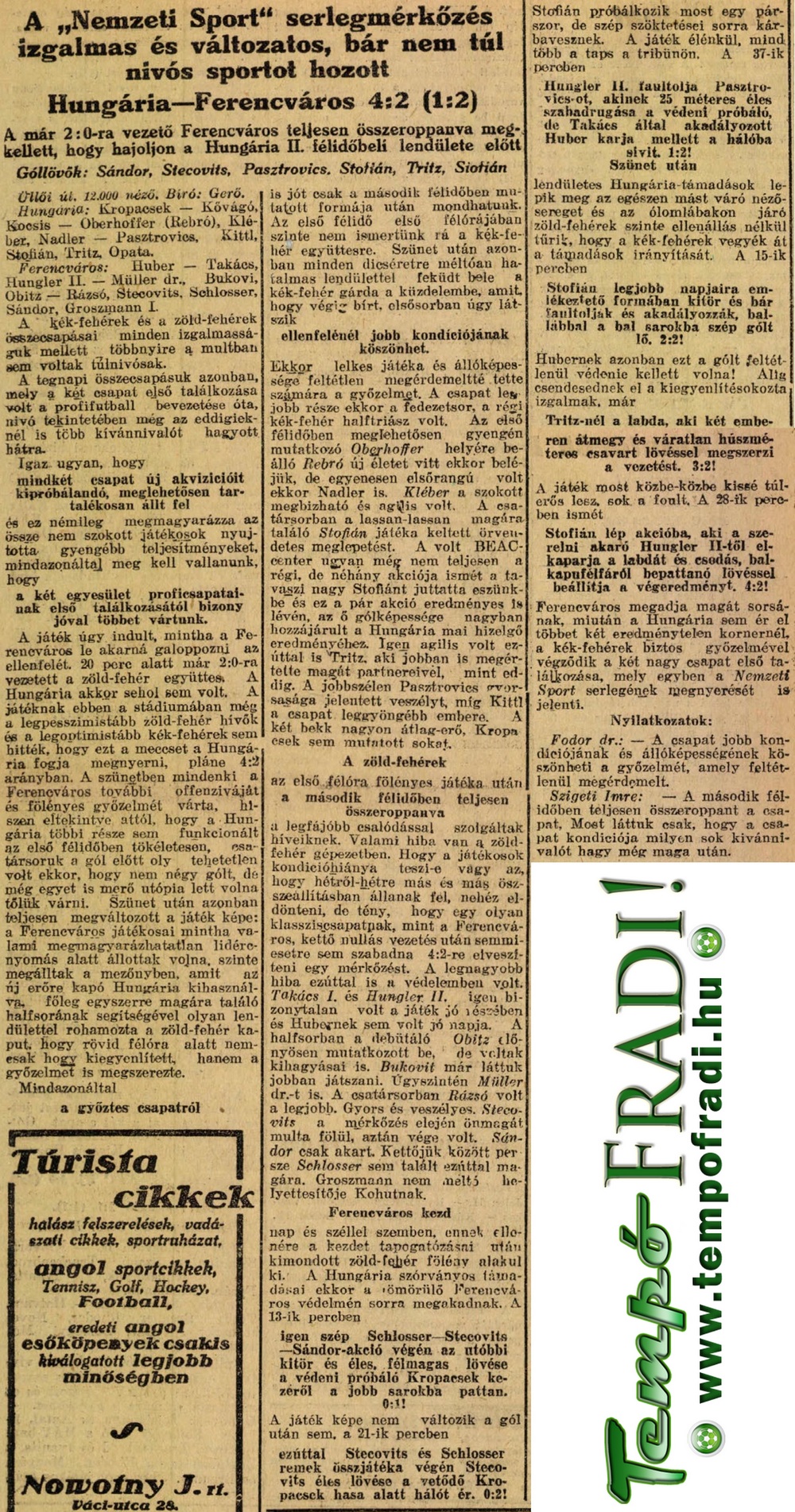 1926.IX.12. Nemzeti Sport serleg, Ferencváros – Hungária 2:4 Közzétéve: 2009. január 26. hétfő | Szerző: K@rcsi A Hungária nyerte a Nemzeti Sport serlegét A 2:0-ra vezető Ferencvárost 4:2 arányban győzte le a nagyobb állóképességgel rendelkező Hungária Vélemény, hozzászólás? Válasz megszakításaAz e-mail címet nem tesszük közzé. A kötelező mezőket * karakterrel jelöltük Hozzászólás * Név * E-mail cím * Honlap Δ