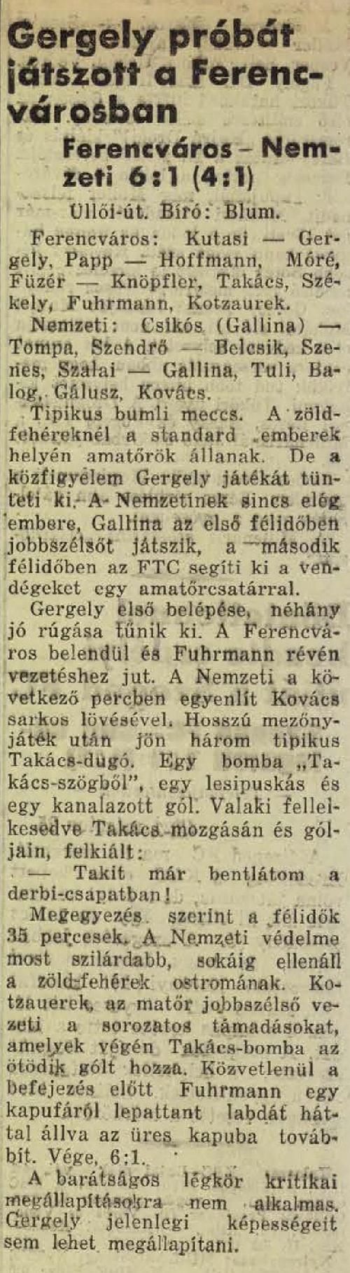 Kategória: 1933/34 | Címke: 1933/34, Csikós Gyula, edzőmérkőzés, Fradisták másik csapatban, Kovács János, Nemzeti SC (NSC)