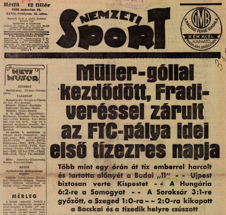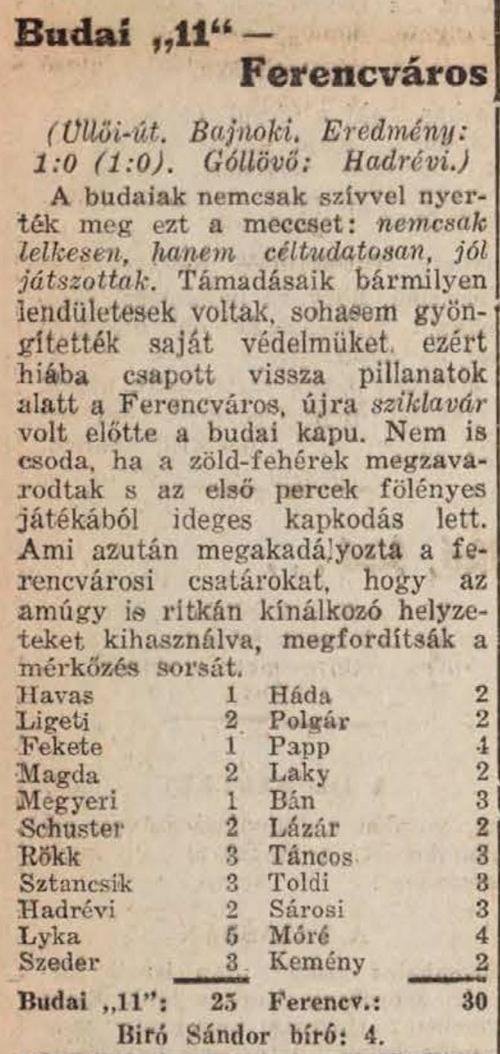 1935.III.17. Budai „11” – Ferencváros 1:0