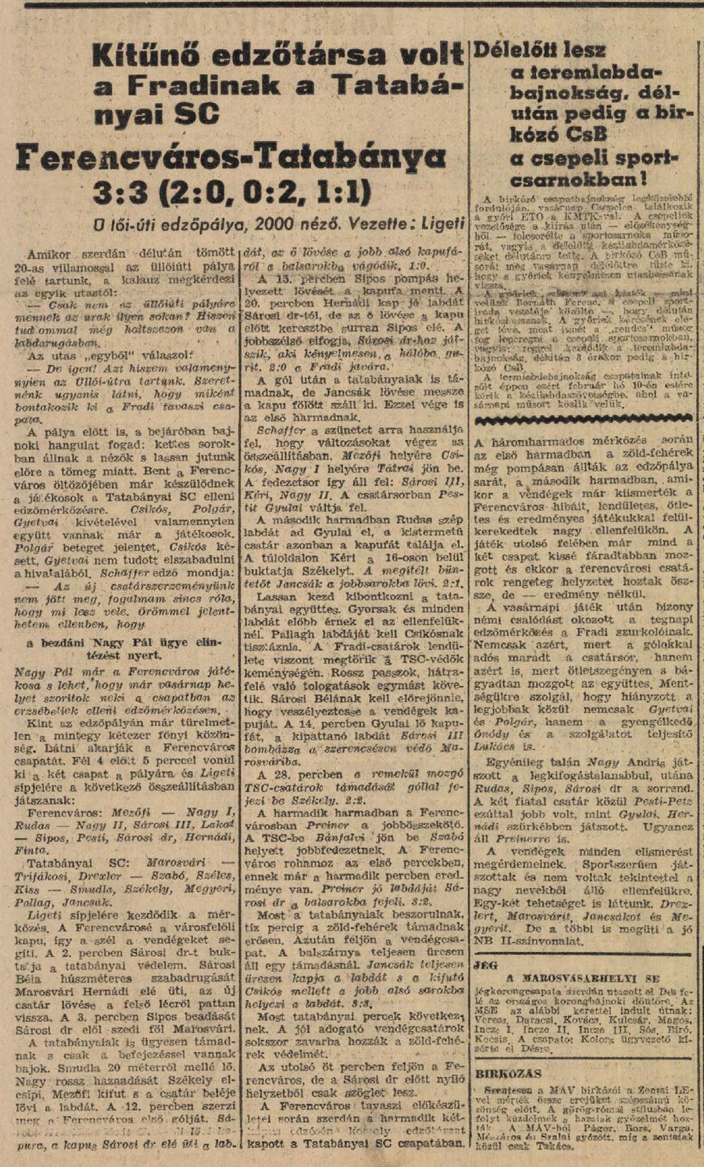 Kategória: 1943/44 | Címke: 1943/44, edzőmérkőzés, Pecz "Pesti" György, Székely Béla, Tatabánya