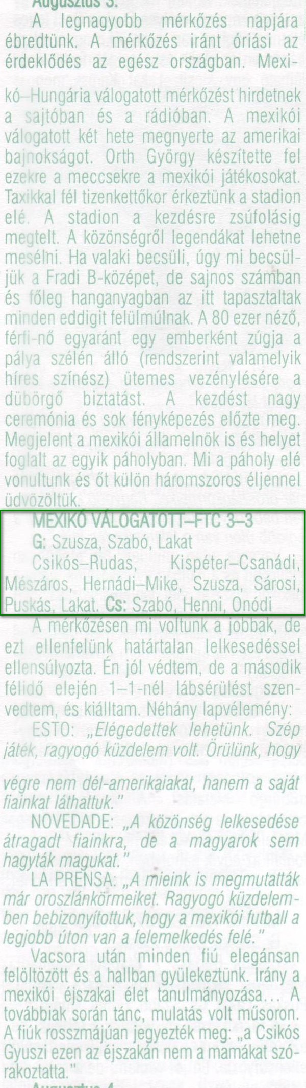 1947.VIII.3. Mexikó – Ferencváros 3:3