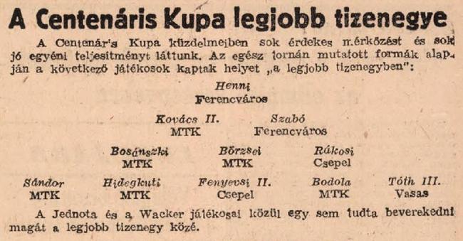 Kategória: 1948/49 | Címke: 1948/49, Centenáris kupa, Deák Ferenc, Henni Géza, Kocsis Sándor, nemzetközi mérkőzés, öngól, Szabó Ferenc I., Wacker
