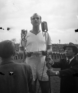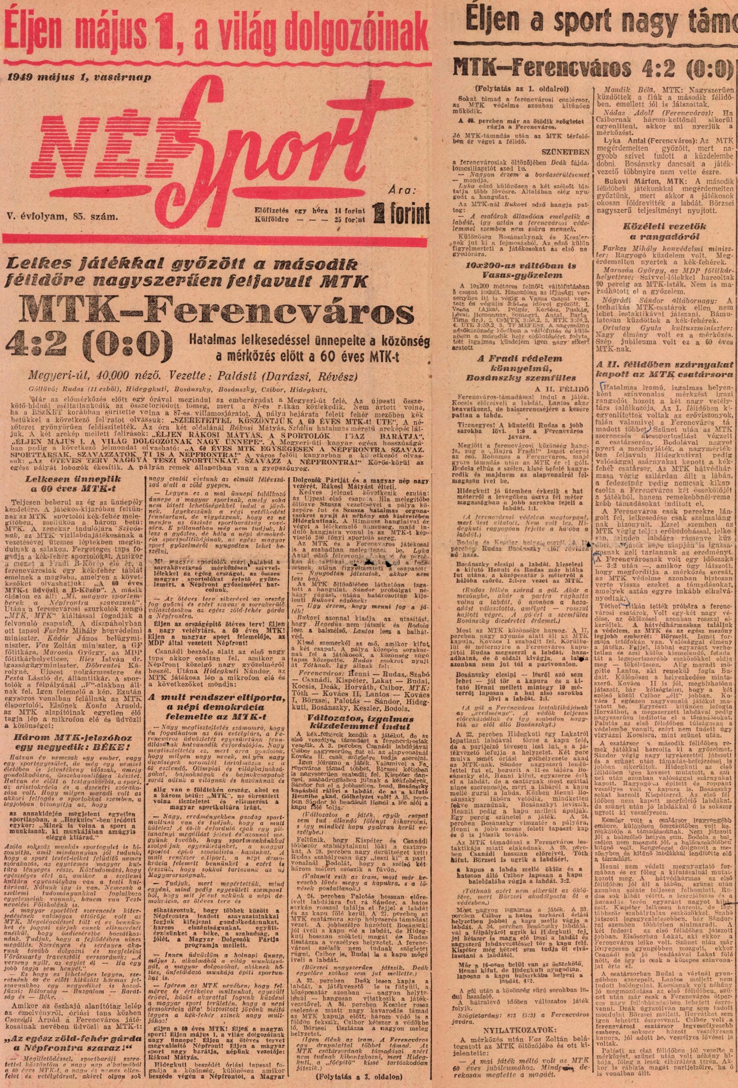A mérkőzés előtt az MTK 60 éves jubileumának ünnepségét tartották. A ferencvárosi játékosok közül Csanádi Árpád köszöntötte a jubiláló egyesületet (fotó: Kovács Márton Ernő – fortepan.hu)