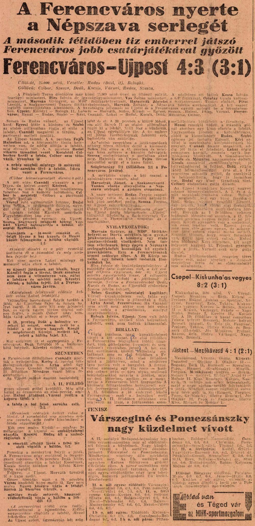 1949.VI.6. Népszava serleg-döntő, Ferencváros – Újpest 4:3