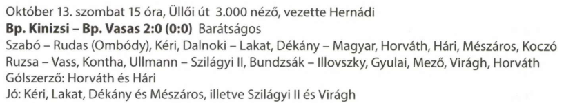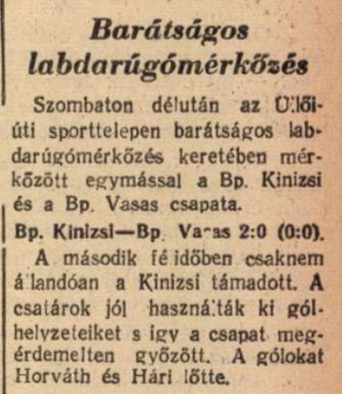 1951.X.13. Bp. Kinizsi – Bp. Vasas 2:0 (edzőmérkőzés)