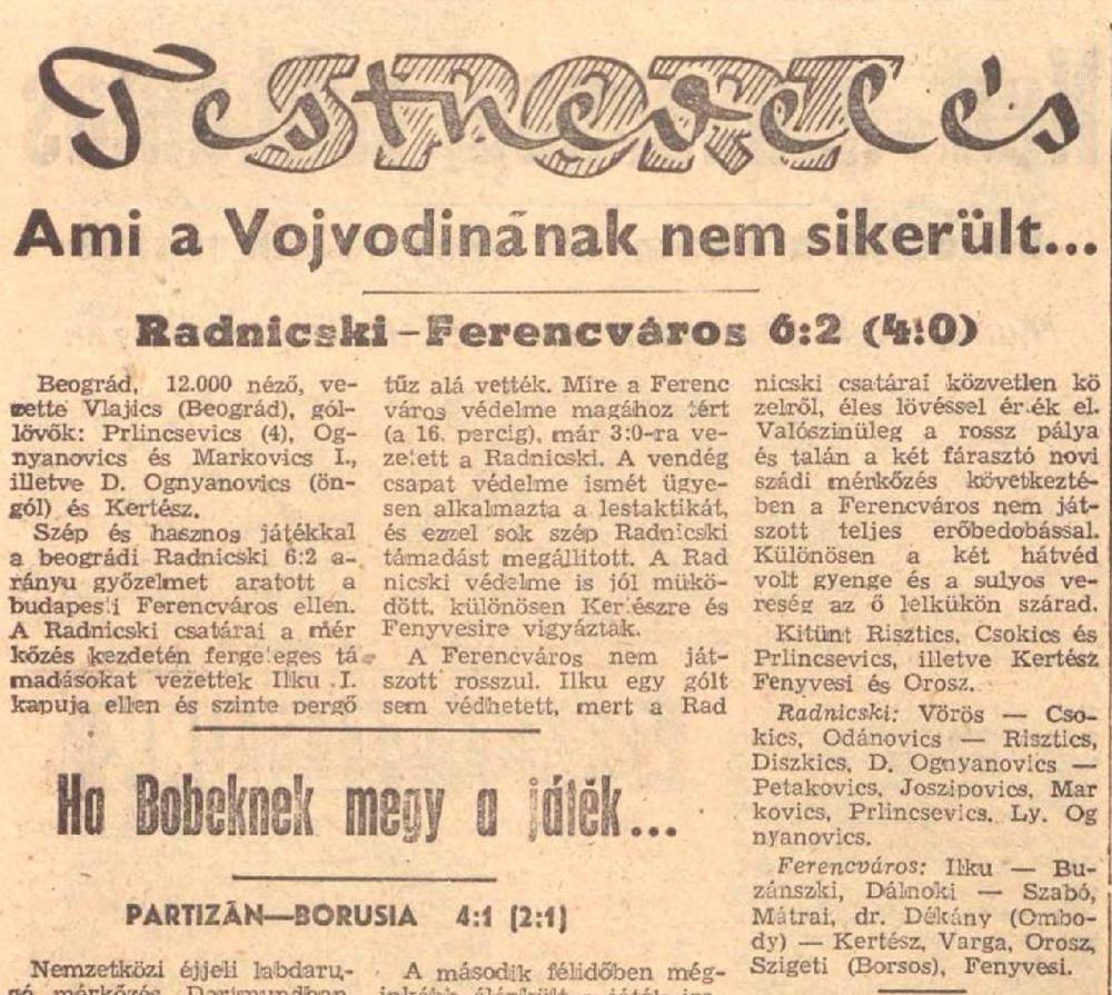 1956.XII.23. Radnicki – Ferencváros 6:2
