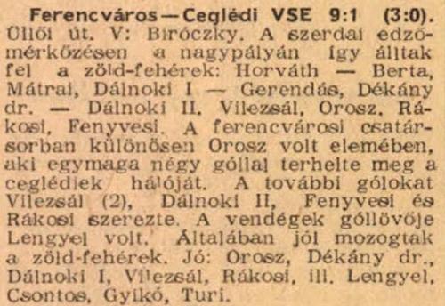 1959.III.18. Ferencváros – Ceglédi VSE 9:1 (edzőmérkőzés)