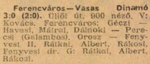 1964.III.18. Ferencváros – Vasas Dinamó 3:0 (edzőmérkőzés)