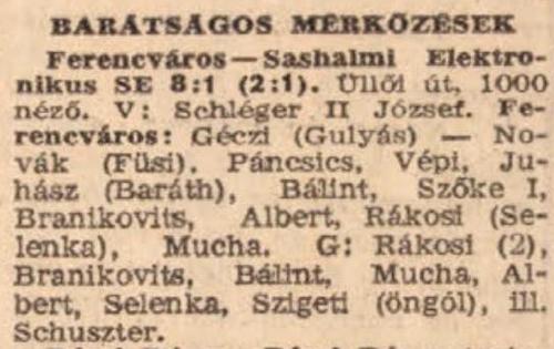 1971.III.18. Ferencváros – Sashalmi Elektronikus 8:1 (edzőmérkőzés)