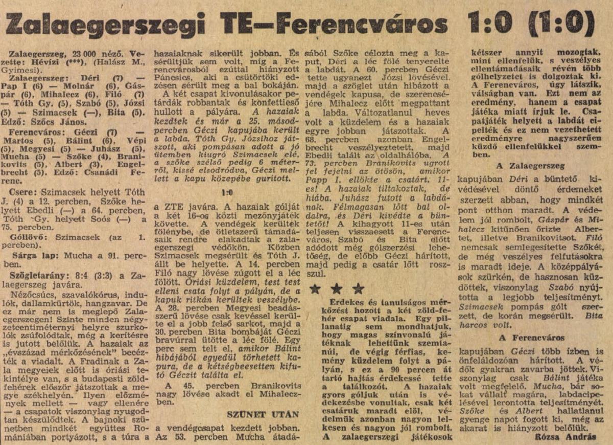 Kategória: 1972/73 | Címke: 1972/73, büntető (kihagyott), Juhász István dr., NB1, ZTE