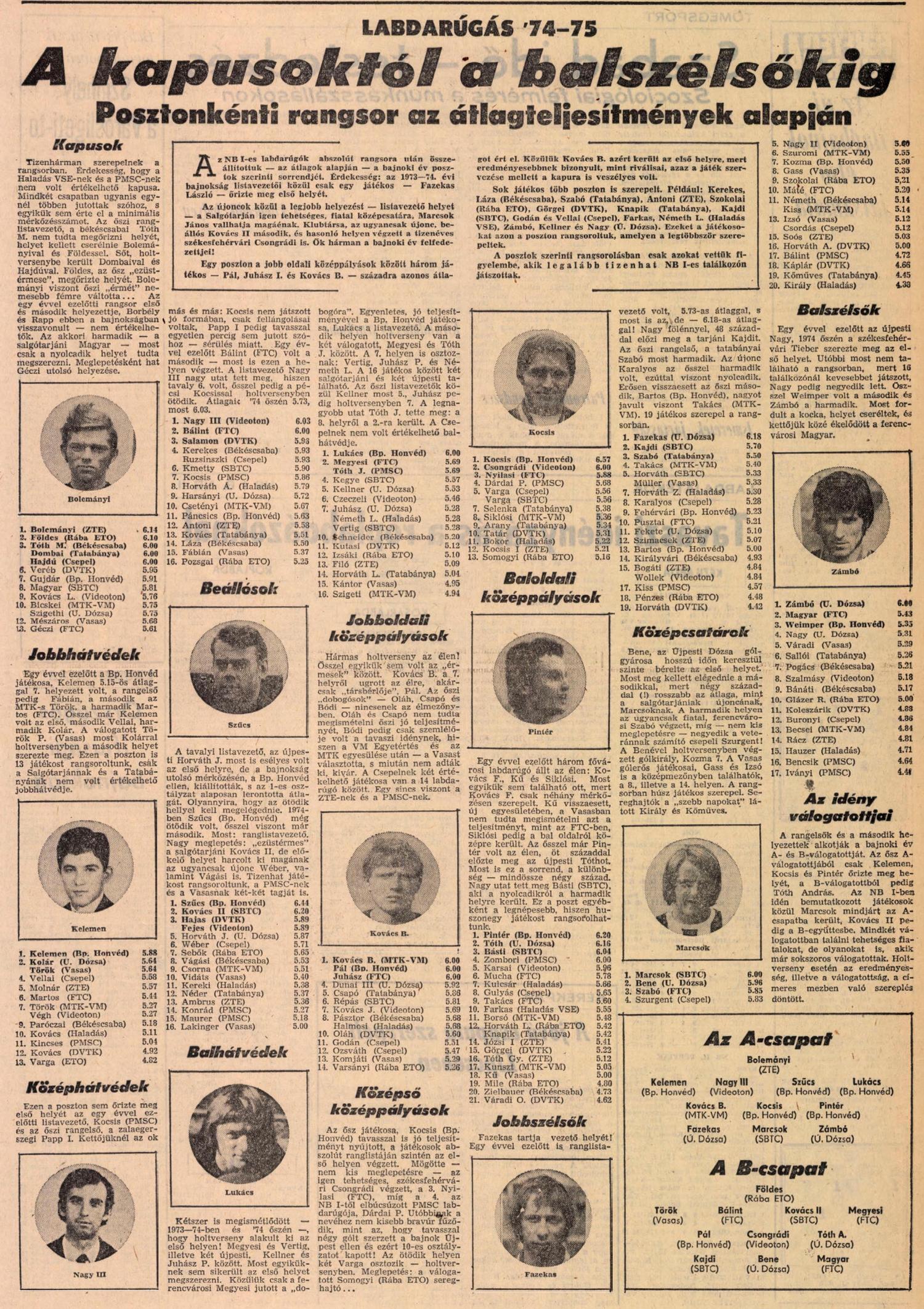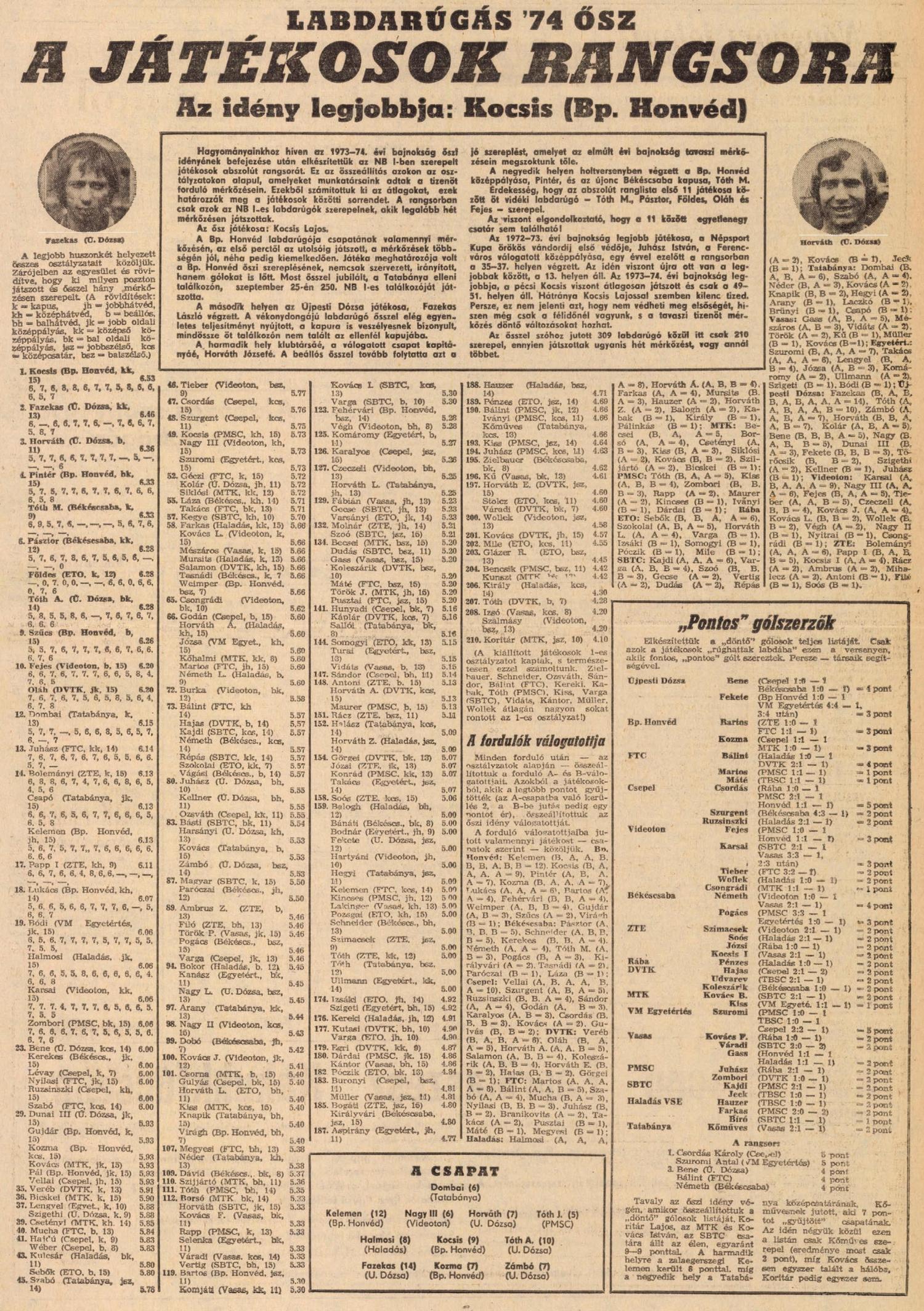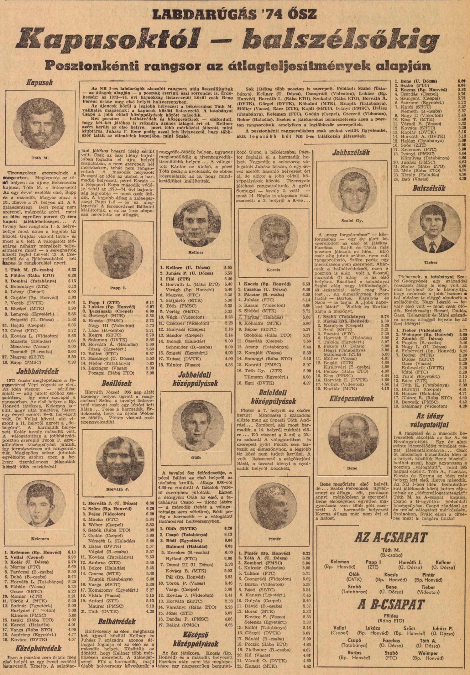 Kategória: Posztonkénti rangsor (NS) | Címke: 1974/75, Bálint László, Géczi István dr., Hajdu József, Juhász István dr., Magyar István, Martos Győző, Máté János I., Megyesi István, Mucha József, Nyilasi Tibor, posztonkénti rangsor, Pusztai László, Szabó Ferenc II., Szűcs Lajos (fedezet), Takács László