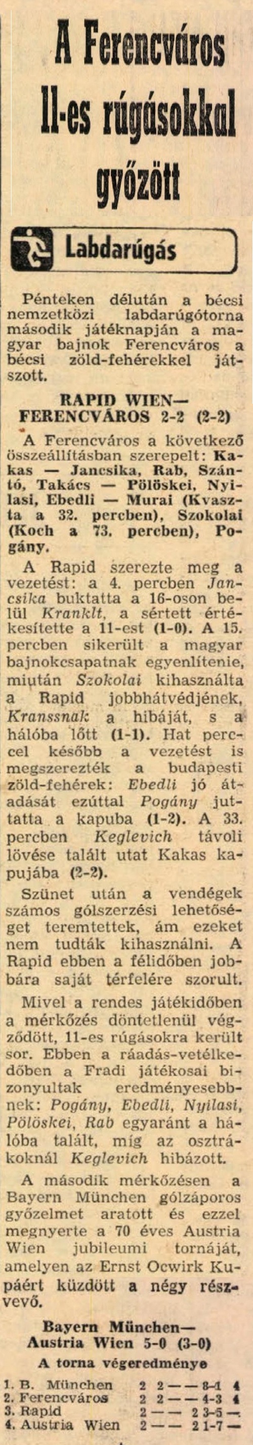 1981.VII.31. Ernst Ocwirk kupa, Rapid Wien – Ferencváros 2-2