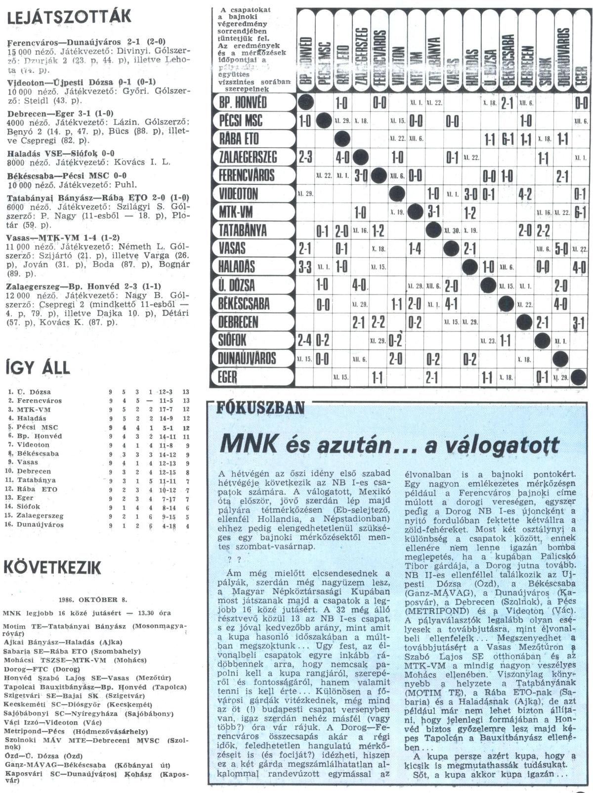 1986.X.4. Ferencváros – Dunaújváros 2-1