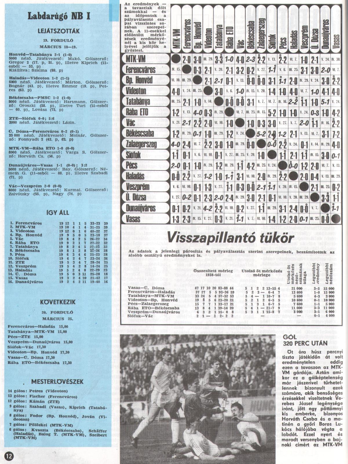 8 gólos: Fodor (Bp. Honvéd), Jován (Videoton)