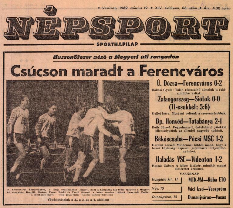 1989.III.18. Újpesti Dózsa – Ferencváros 0-2