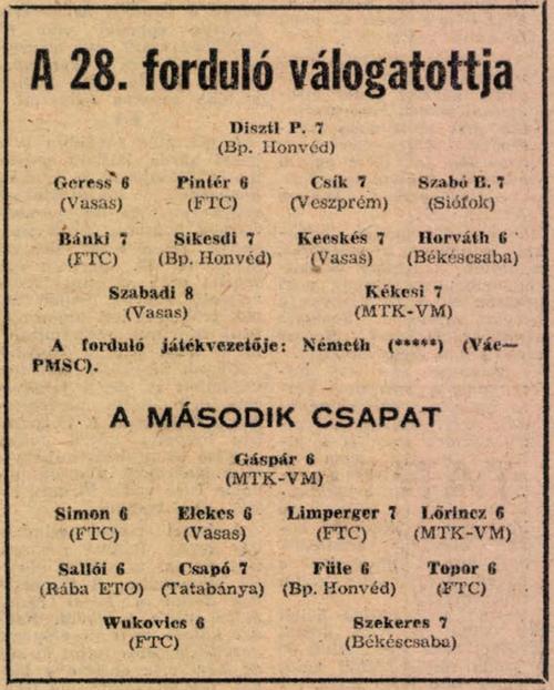 9 gólos: Csucsánszky (Videoton), Fodor (Bp. Honvéd), Handel (Rába ETO)