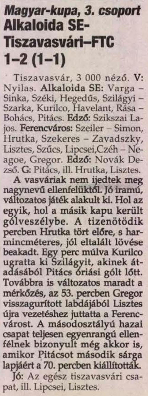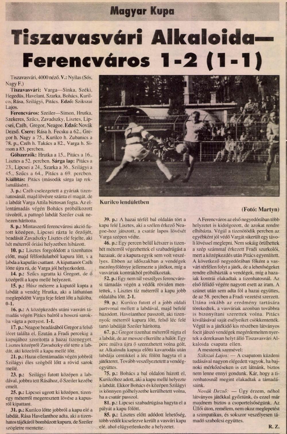 1994.X.27. MK, Tiszavasvári Alkaloida – Ferencváros 1-2