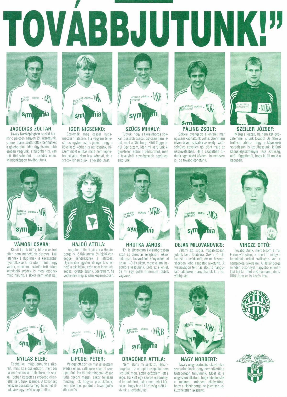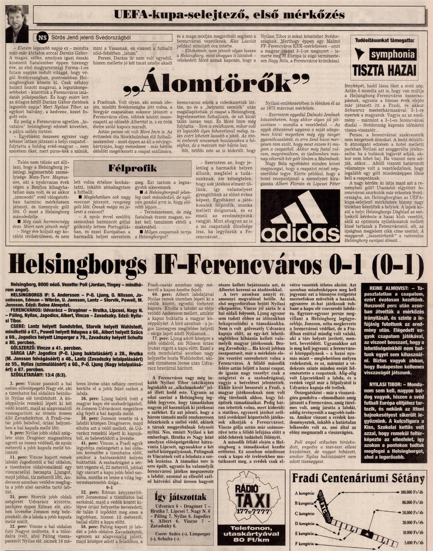 Nyilasi Tibor, a Ferencváros vezetőedzője – miután megtudta, hogy csapata a svéd Helsingborgs IF ellen mérkőzik az UEFA-kupa selejtezőjében – így nyilatkozott az MTI munkatársának: