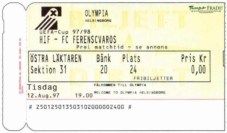 1997.VIII.12. UEFA selejtező, Helsingborgs IF – Ferencváros 0-1