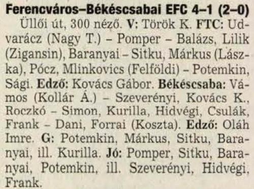 1998.IV.11. Ferencváros – Békéscsaba 2-1