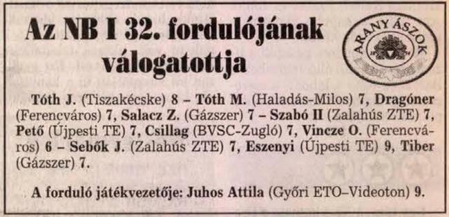 13 gólos: Fehér (Győr), Orosz, Kenesei (MTK), Ilea (DVSC)