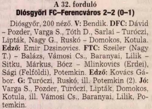 1998.V.23. Diósgyőr – Ferencváros 0-2