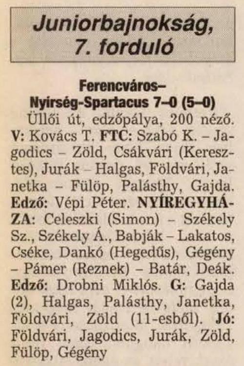 1999.IX.25. Ferencváros – Nyírség-Spartacus 4-0
