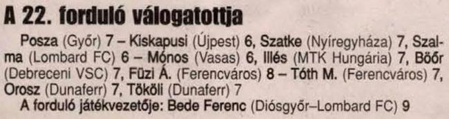 8 gólos: Zavadszky (Dunaferr), Kovács Z. (Újpest)