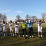 Az öltözőépület a pályától messzebb, egy kis házban található. A mieink a melegítés után még visszamentek, a bodajkiak szakvezetőik, Hartyáni Gábor és Lőrincz Emil köré gyűltek és az oldalvonalnál várnak a mieinkre.
