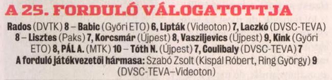 - Sajtóhiba: A 27. forduló válogatottja