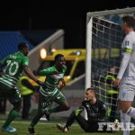 DEMJÉN! Varga sarokrúgása után Boli tud fejelni a rövid saroknál, de a hazai kapus ki tudja tolni a léc alá tartó labdát!