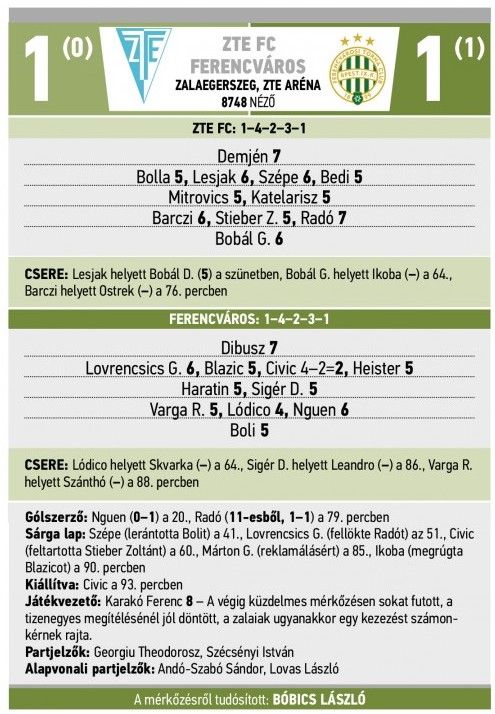 (A Nemzeti Sport, az nso.hu, a Ferencváros és a ZTE hivatalos honlapja, valamint az MLSZ Adatbankja alapján)