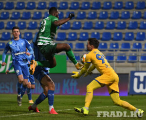 Vass kap a jobbon nagy passzt Tajtitól, a ballábas beadást kapura fejelné az ötösről Futács, de ment előle a magasra ugró Mmaee. Fejjel.