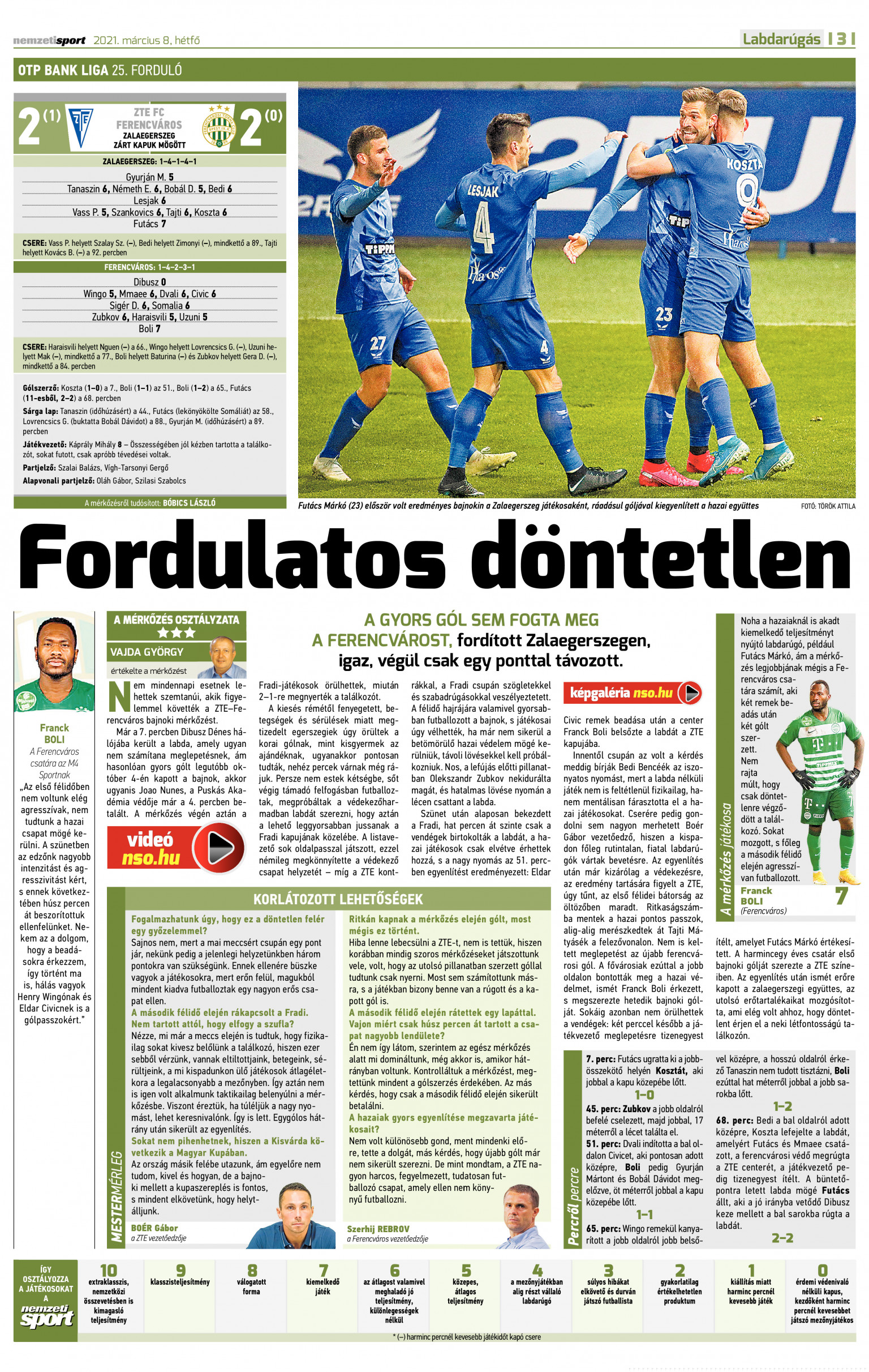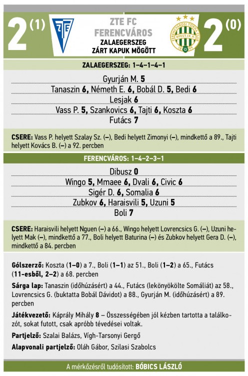 (A Nemzeti Sport, az nso.hu, a Ferencváros és a ZTE hivatalos honlapja, valamint az MLSZ Adatbankja alapján)