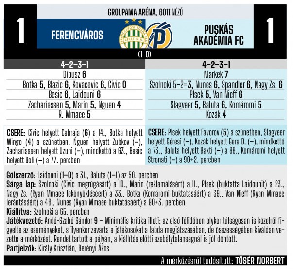 (A Nemzeti Sport, az nso.hu, a Ferencváros és a Puskás Akadémia hivatalos honlapja, valamint az MLSZ Adatbankja alapján)