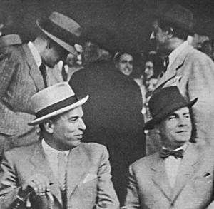 Vitéz Jaross Andor belügyminiszter, az FTC új elnöke Berauer József dr. alelnök társaságában figyeli az 1944. évi kupadöntőt