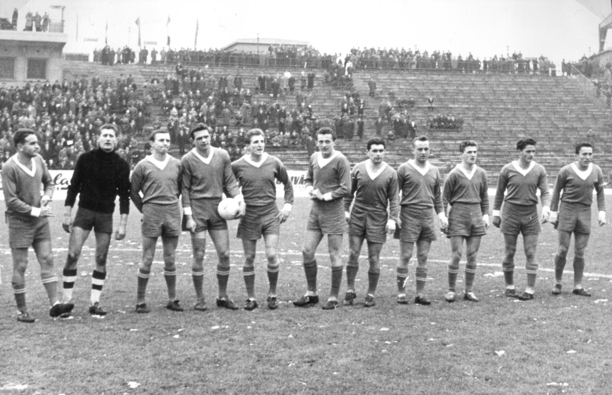1962, Állnak (balról): Dalnoki, Landi, Orosz, Mátrai, Havasi, Albert, Fenyvesi, Vilezsál, Kökény, Kocsis Gy., Rákosi