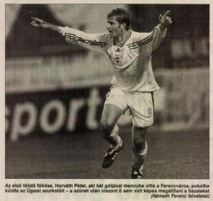 „A Ferencváros már biztos győztesnek látszott, amikor az Újpest egy jó cserét követően, leginkább a fiatal Terjéknek köszönhetően egyenlített és rászolgált a döntetlenre…A két szurkolótábor 40 percen át csupán hangpárbajt vívott a lelátón, de a Ferencváros vezető gólját követően a nézőtéren is elszabadultak az indulatok. Egy maroknyi újpesti csoport Páncsics Miklóst, a Ferencváros menedzser-igazgatóját észrevéve berontott a díszpáholyba, menekülésre késztetve a zöld-fehérek vezetőjét. A rendőrök késve érkeztek és majdnem összecsaptak a rendbontókkal. Percekbe telt, míg az indulatokat megfékezték, és a szurkolókat kiszorították a díszpáholyból. A második félidő késve kezdődött, mert a nézőtérről bedobált petárdák és füstbombák miatt a pályát vastag füstfelhő borította.” (1999 – Újpest)