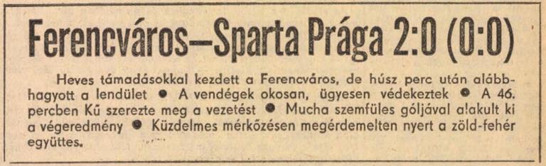 1972. Ferencváros – Sparta Praha 2:0, KEK