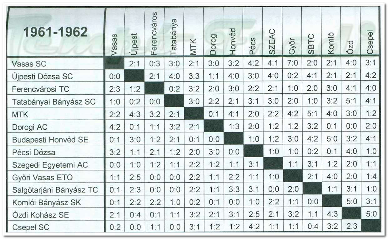 1961 — 1962-es NB. – Bajnok: a Bp. Vasas, II. Újpest, III. Ferencváros.