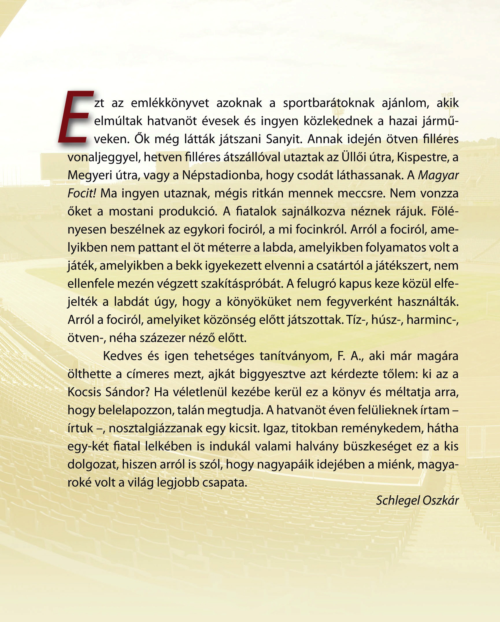 A múlt év végén, Hajdúsámsonban, egy disznóvágáson találkoztam vele. A Harangi családot kísérte el, mert hívták, ki tudja miért ők is szeretik, én tudom, mert Oszit mindenki szereti. Szóval két falat közben halkan oda szól – Jánoskám, a Kocsis Sanyiról van egy szinte kész könyvem, megcsináljuk? Én habozás nélkül rávágtam persze Oszikám, megcsináljuk.