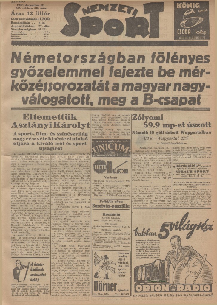 Battlay Imre: „ — A Ferencváros meggyászolja és megsiratja elhunyt bajtársát és szeretett í­róját. A klub minden mozdulni tudó tagja jelen lesz a temetésen és részvétünk jeléül koszorút helyezünk halott barátunk sí­rhantjára.”