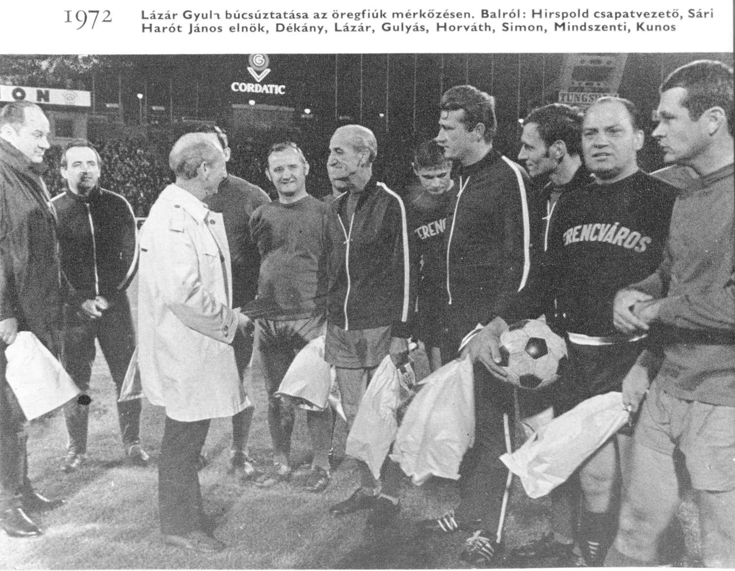 Az 1974-es Üllői úti pályaavatót megelőző FTC – Vasas öregfiúk meccsen ő végezte az ünnepélyes kezdőrúgást! Egy évtizeden át vezette az FTC öregfiúk gárdáját, haláláig hű volt a Ferencvároshoz.