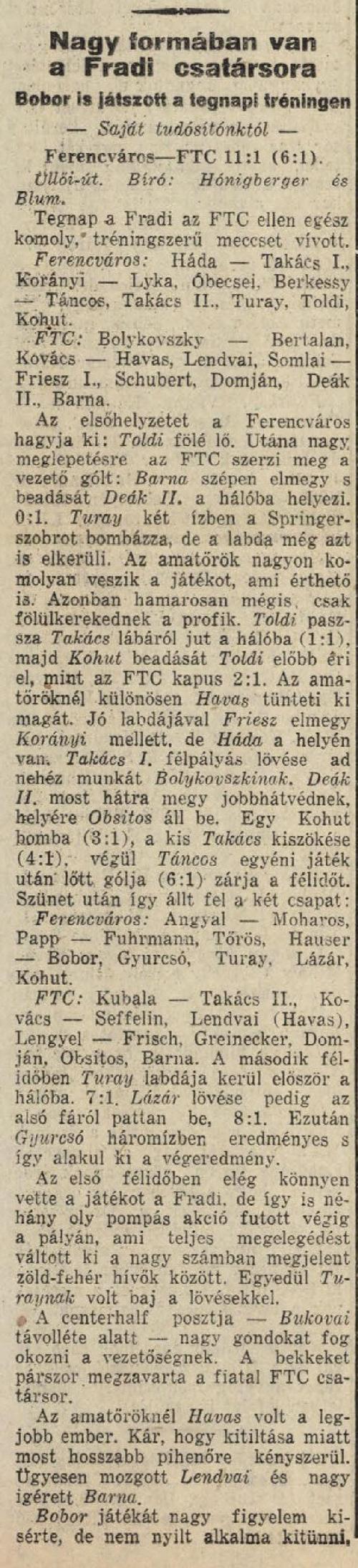1930.VIII.14. Ferencváros – FTC 11:1 (edzőmérkőzés)