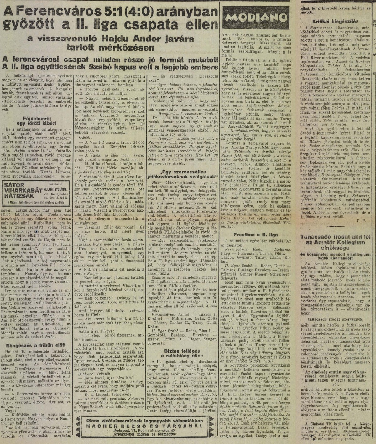 1930.VIII.27. Ferencváros – II. Liga csapata 5:1 (edzőmérkőzés)
