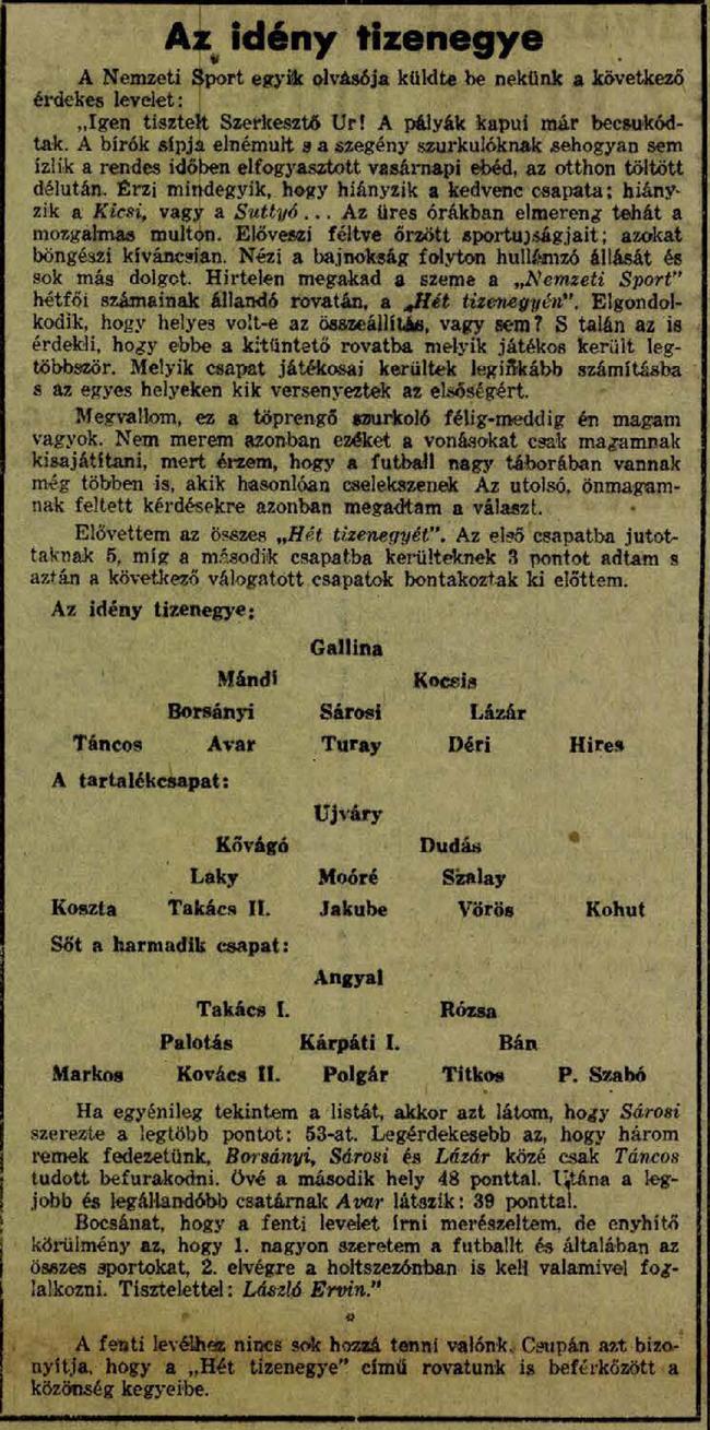 Nemzeti Sport: AZ ÉV „TIZENEGYE”