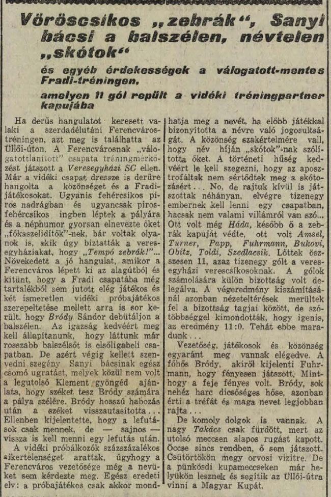 1931.V.20. Ferencváros – Veresegyházi SC 11:0 (edzőmérkőzés) Közzétéve: 2009. január 31. szombat | Szerző: K@rcsi „A próbajátékos csak akkor mondhatja meg a nevét, ha előbb játékkal bizonyította a névre való jogosultságát.” Vélemény, hozzászólás? Válasz megszakításaAz e-mail címet nem tesszük közzé. A kötelező mezőket * karakterrel jelöltük Hozzászólás * Név * E-mail cím * Honlap Δ