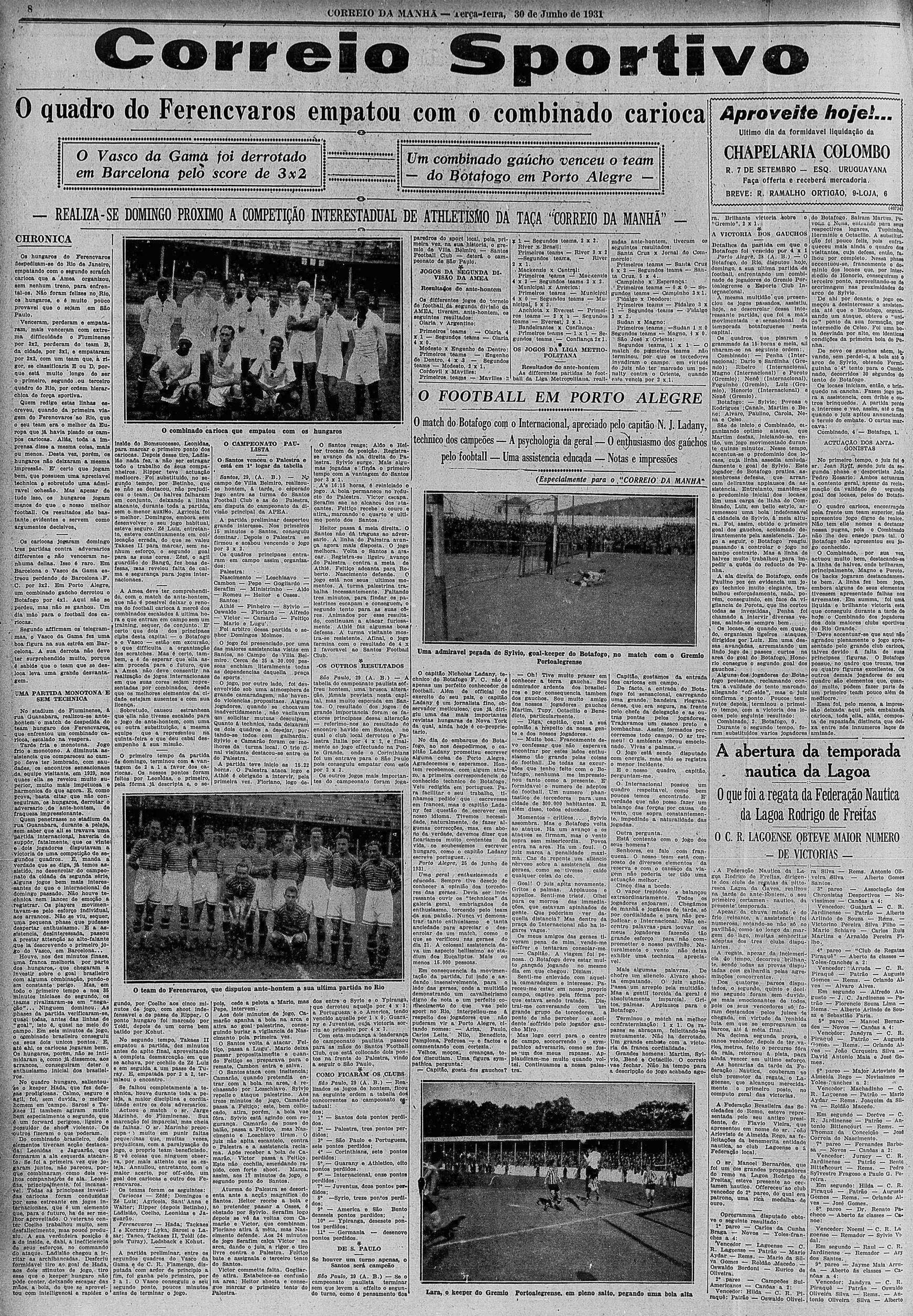 1931.VI.28. Carioca – Ferencváros 2:2