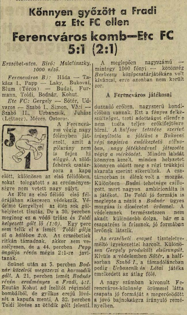 Kategória: 1931/32 | Címke: 1931/32, edzőmérkőzés, ETC, Urbancsik Gábor